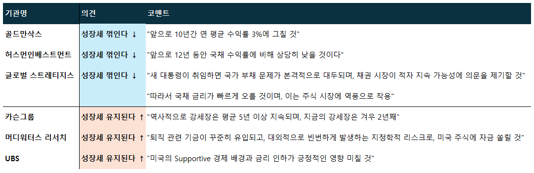 제가 전문가도 아니고 무당도 아니기 때문에, S&P500 지수에 대한 미래를 전망할 수는 없습니다. 따라서, 저도 스터디할 겸 주요 기관들 입장에서는 어떻게 전망하는지 찾아 봤습니다